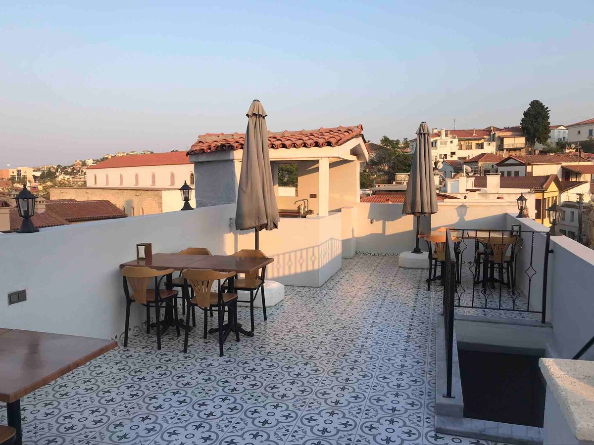 Apart Butik kami terletak di pusat Çeşme dan menyediakan akses mudah ke pantai, pengangkutan & kawasan membeli-belah. Suite kami elegan & selesa dan semua peralatan dapur disediakan. Tuala setiap hari ditukar & cadar ditukar pada hari-hari tertentu. Sarapan dihidangkan di kawasan taman dan ia termasuk. (Perkhidmatan bilik & Sarapan dihidangkan dari awal Jun hingga akhir September)