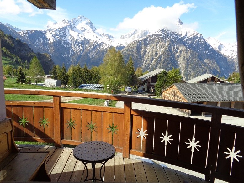 Studio yang hangat dengan balkoni dan pemandangan Meije