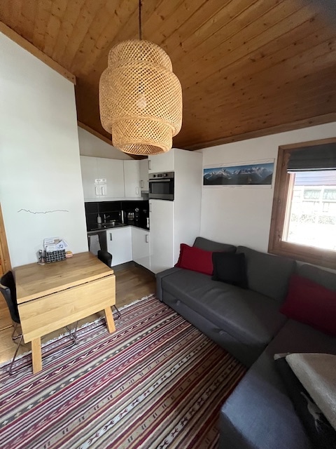 Apartmen 28 m² telah diubahsuai sepenuhnya dengan pemandangan Mont Blanc yang indah, yang boleh menampung sehingga 4 orang. Suasana yang hangat dan hiasan yang kemas. Lokasi pusat berhampiran dengan kedai, restoran, lif ski dan pengangkutan (stesen bas, stesen kereta api)