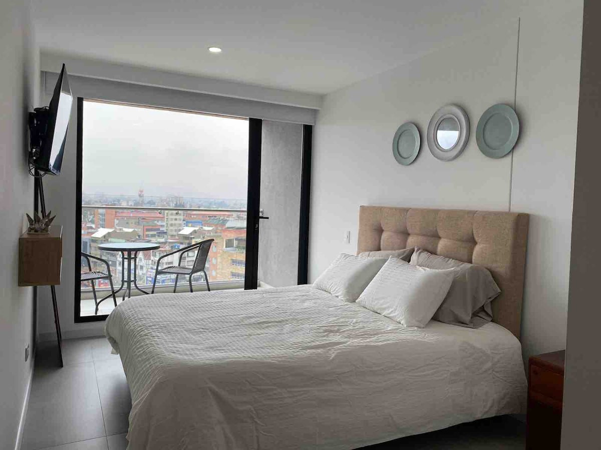 Apartmen moden dan selesa di tengah-tengah Bogotá, sesuai untuk pelancong, pelajar dan profesional, dengan sambungan yang sangat baik ke pusat bersejarah dan kawasan utama seperti Zona G, Zona T dan Parque de la 93. Bangunan ini mempunyai ruang kerja bersama, teres 360° yang menghadap ke bandar, dan ruang dobi, manakala apartmen menawarkan meja kerja, Wi-Fi stabil, dan peralatan lengkap untuk penginapan yang praktikal dan selesa. Sesuai untuk perjalanan percutian, belajar atau kerja jarak jauh. Kami sedang menunggu anda!