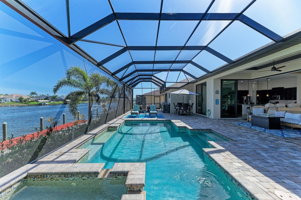 Welcome to your private waterfront paradise in beautiful Port Charlotte, FL! This 5-bedroom, 3-bath luxury home comfortably sleeps 10 and offers everything you need for the ultimate Florida getaway. Enjoy stunning canal views, a heated pool, relaxing jacuzzi spa, spacious screened lanai, and your own private dock with direct bay access for boating or fishing. Whether you’re sipping morning coffee on the lanai, soaking in the hot tub, or watching sunset reflections over the canal, this retreat