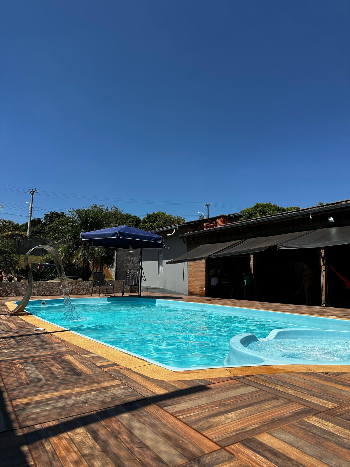 Chácara com 1.000 m², ideal para momentos inesquecíveis. Conta com 3 dormitórios, 2 banheiros, espaço gourmet completo com cooktop, fogão industrial, 2 geladeiras e 1 freezer. Ampla varanda, piscina com cascata e iluminação em LED, salão nos fundos e lavanderia. Ambiente perfeito para reunir família e amigos. Disponível para pacote de Natal e Réveillon.