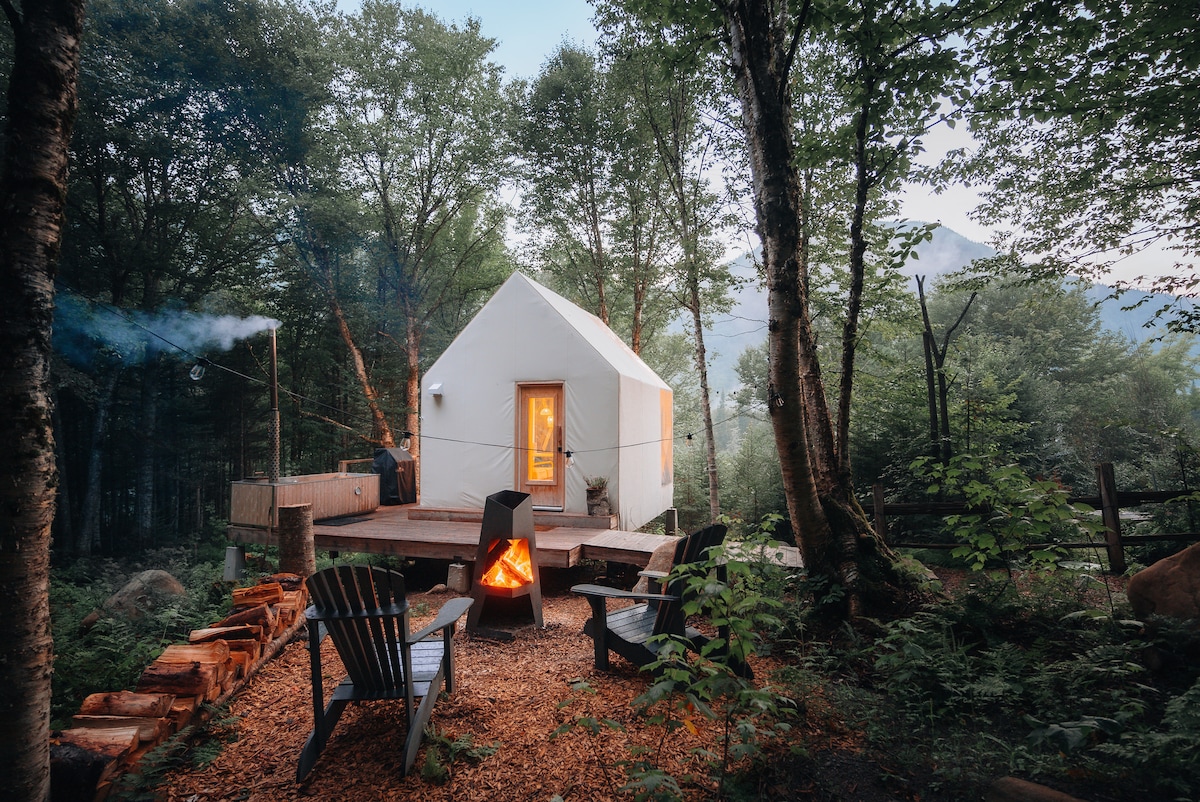 Envie d’une escapade en pleine nature? Ce chalet à flanc de montagne de style scandinave saura vous charmer. Avec son terrain de plus de 1 million pieds carrés, vous pourrez profiter d’un lac, d’une rivière, de sentiers pédestres, tapis de yoga et bien plus! Vous séjournerez dans un endroit où la détente et la nature sont au rendez-vous. Bien équipé, le chalet n’attend que vous! Conçu pour 2 personnes mais pouvant accueillir jusqu’à 3 personnes avec le canapé-lit (simple).