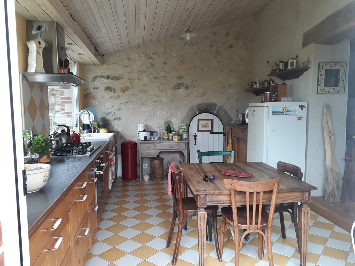 Terletak di tengah-tengah taman hutan seluas 6000 m2, kotej kami akan mempesonakan anda dengan ketenangannya. Dapur terbuka ke ruang tamu dengan batu terdedah di mana api yang baik akan memanaskan anda di pendiangan besar (kayu disediakan). Di tingkat atas anda akan menemui 3 bilik termasuk satu dengan bilik persalinan. Teres menghadap selatan dan taman yang luas kondusif untuk berehat, barbeku, dan permainan luar. Perhatikan rusa dan burung dalam suasana hijau ini, sesuai untuk keluarga dan pencinta alam semula jadi.