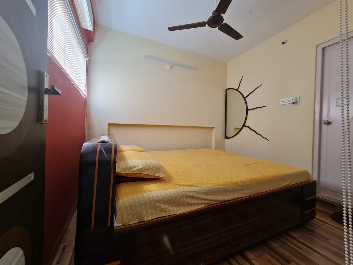 OpenSky Penthouse is a completely private top-floor retreat designed for ultimate comfort and privacy. This spacious, spotless, fully furnished stay features AC, smart TV, sofa, double bed, wardrobe, fridge, and high-speed Wi-Fi. The modern bathroom includes a geyser and essentials. Enjoy a large private terrace—perfect for relaxation, yoga, and breathtaking sunrises and sunsets. Ideal for families, couples, and business travelers seeking a serene escape.