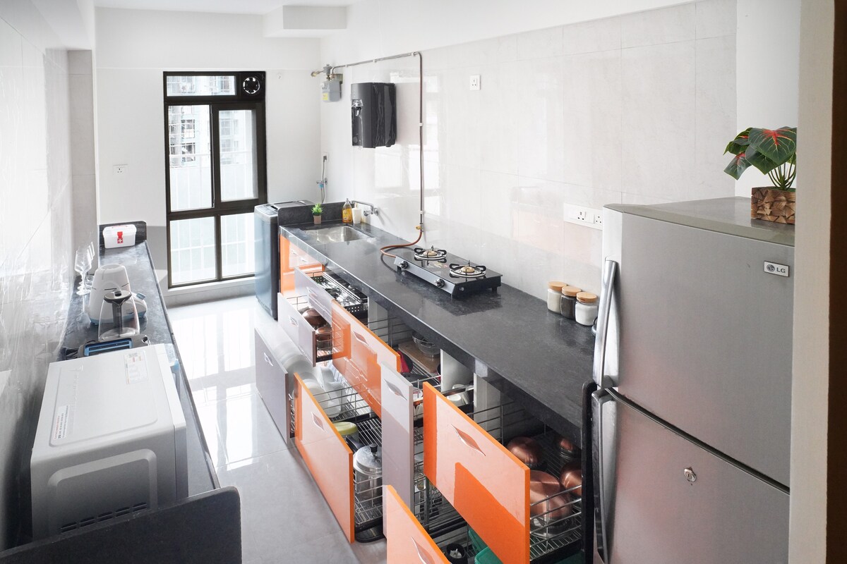 15 Minit ke BKC 27 Minit ke Marine Drive 25 Minit ke Thane 15 Minit ke Vashi 20 Minit ke Bandra Selamat datang ke penginapan menakjubkan kami yang terletak di tengah-tengah bandar! Masuk ke dalam kemewahan dan keselesaan dengan penginapan luas kami yang mempunyai balkoni panorama yang menakjubkan yang akan membuat anda kagum. Balkoni panorama kami menjanjikan pengalaman yang tidak dapat dilupakan, menjadikan penginapan anda dengan kami benar-benar luar biasa. Tempah sekarang dan tingkatkan percutian anda ke tahap baharu!