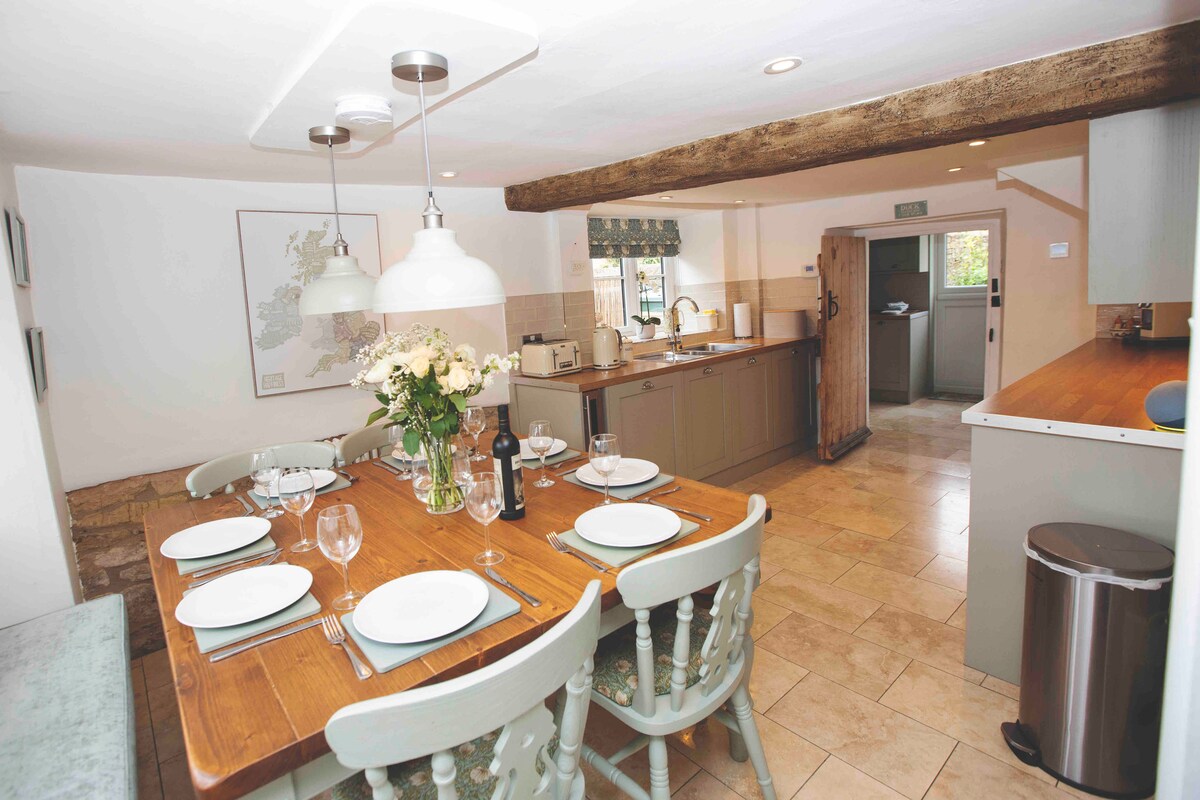 Wisteria Cottage is a high spec, Luxury cottage with under floor heating,log burner,Large kitchen/dinning area with views across fields and a downstairs Wc/Utility space. Di tingkat atas terdapat dua bilik tidur yang dipanaskan di tengah-tengah dan bilik mandi bawah lantai dan rel tuala yang dipanaskan dengan rasuk terdedah. The master has a generous King size bed and the second bed, a single day Bed with a pull out trundle under. Bilik mandi mempunyai tab mandi atas gulung dengan pancuran mandi dan air panas tanpa had. Kami menawarkan pesona Cotswold dengan kemewahan moden