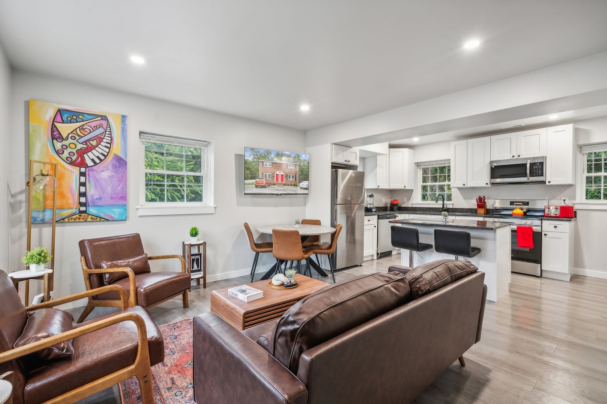 Selamat Datang ke Apartmen Pereka Kami di Pusat Bandar Richmond! Kehidupan mewah di pusat Richmond. Menampilkan 2 Katil King, 2 Bilik Mandi Penuh, TV 75”, dan dapur yang lengkap. Direka oleh Johnathan Miller Hanya beberapa blok dari restoran terbaik, kedai BBQ, kafe, bar, dan kilang bir. Beberapa minit dari Pusat Bandar, Pusat Konvensyen, Stesen Main Street, Denai Basikal, dan Pusat Perubatan VCU. Akses mudah ke lapangan terbang dan antara negeri. Tempah sekarang untuk penginapan yang tidak dapat dilupakan!
