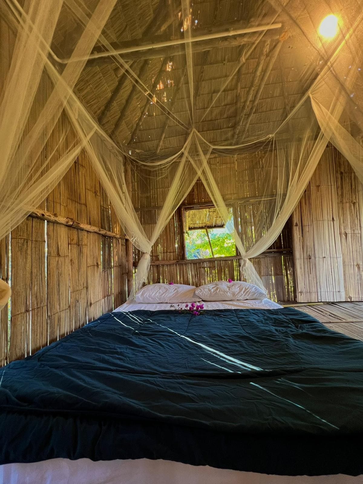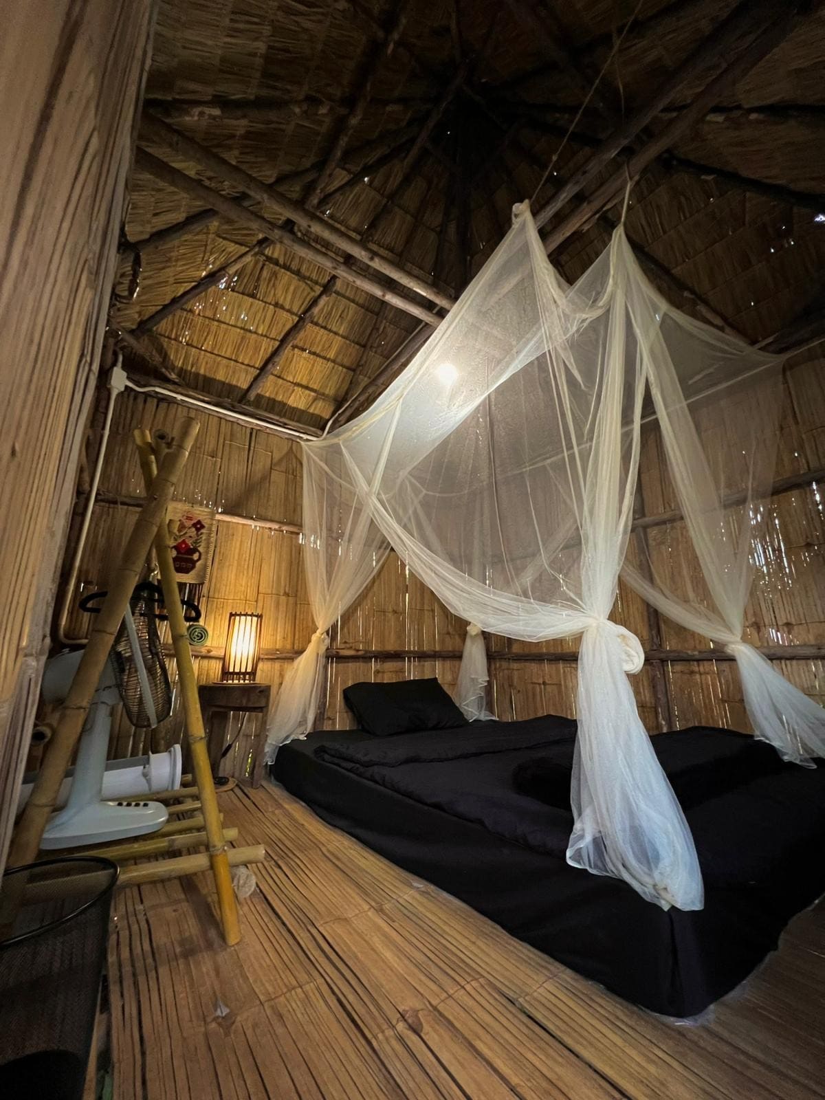 Nikmati bunyi alam semula jadi, kebersamaan dengan haiwan, perubahan warna matahari terbit dan terbenam. Bilik ini ialah kabin dua tingkat yang dibina oleh kayu jati lama dan bahan buluh semula jadi. Ia dilengkapi dengan taman persendirian sendiri, pancuran mandi separa luaran dengan tab mandi tong kayu, tandas persendirian dan ruang tamu. Ia mempunyai pemandangan terbaik ladang kami. Dengan balkoni yang menghadap Pemandangan Gunung yang menakjubkan dan melihat seluruh ladang dari setiap sudut. Ia pilihan terbaik untuk pasangan dan keluarga.