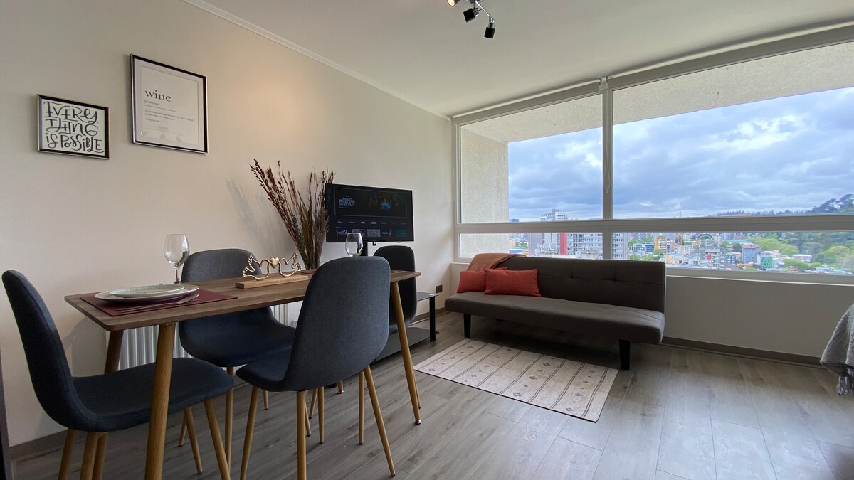 Nikmati apartmen baharu ini, lengkap untuk dua orang, kunci pintar, pusat dan sangat selesa, sesuai untuk menginap di Concepción. Beberapa langkah dari Universidad de Concepción, Hospital Regional, Tribunales, dll Bangunan ini mempunyai Keselamatan Pekerja Rencam 24/7, Circuito Cerrado de Tv, Tempat Letak Kereta Persendirian Bawah Tanah dan Dobi Bangunan