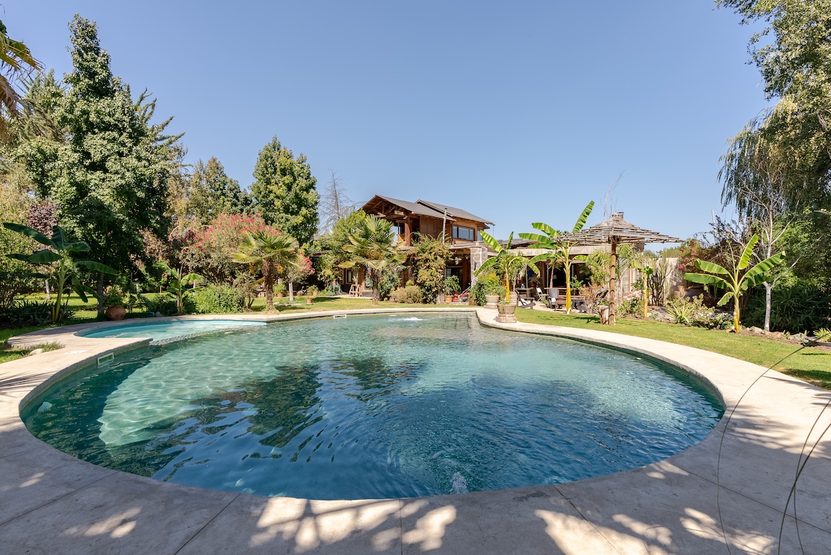 Kami menjemput anda untuk menikmati pengalaman unik di rumah desa kami, yang terletak di tengah-tengah kebun anggur hanya 90 minit dari Santiago. Tempat yang ideal untuk berehat dan menikmati alam semula jadi dan pemandangan Pergunungan Andes. Rumah ini terletak di atas kilang wain bawah tanah kami, tempat kami membuat wain artisan, organik dan biodinamik. Penginapan ini mempunyai kolam renang dan ruang luar yang besar dikelilingi oleh kebun anggur.