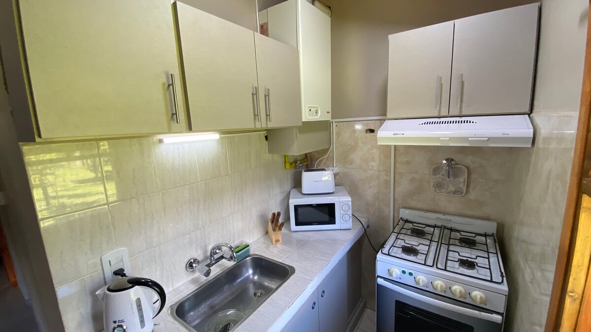 Kabin yang lengkap dan selesa yang terletak di pusat bandar Ushuaia yang dikelilingi oleh taman yang indah untuk penginapan yang lebih santai dan dengan itu menikmati bandar ini dengan lebih baik. Pasar raya, kedai dan pusat bandar 2 blok jauhnya serta panduan menyeluruh mengenai apa yang perlu dilakukan hanyalah beberapa kelebihan yang kami tawarkan. Kabin ini mempunyai segala-galanya yang diperlukan untuk berasa selesa seperti di rumah sendiri dan menjadikan penginapan anda lebih menyeronokkan. Adalah penting untuk mempertimbangkan penggunaan tangga.