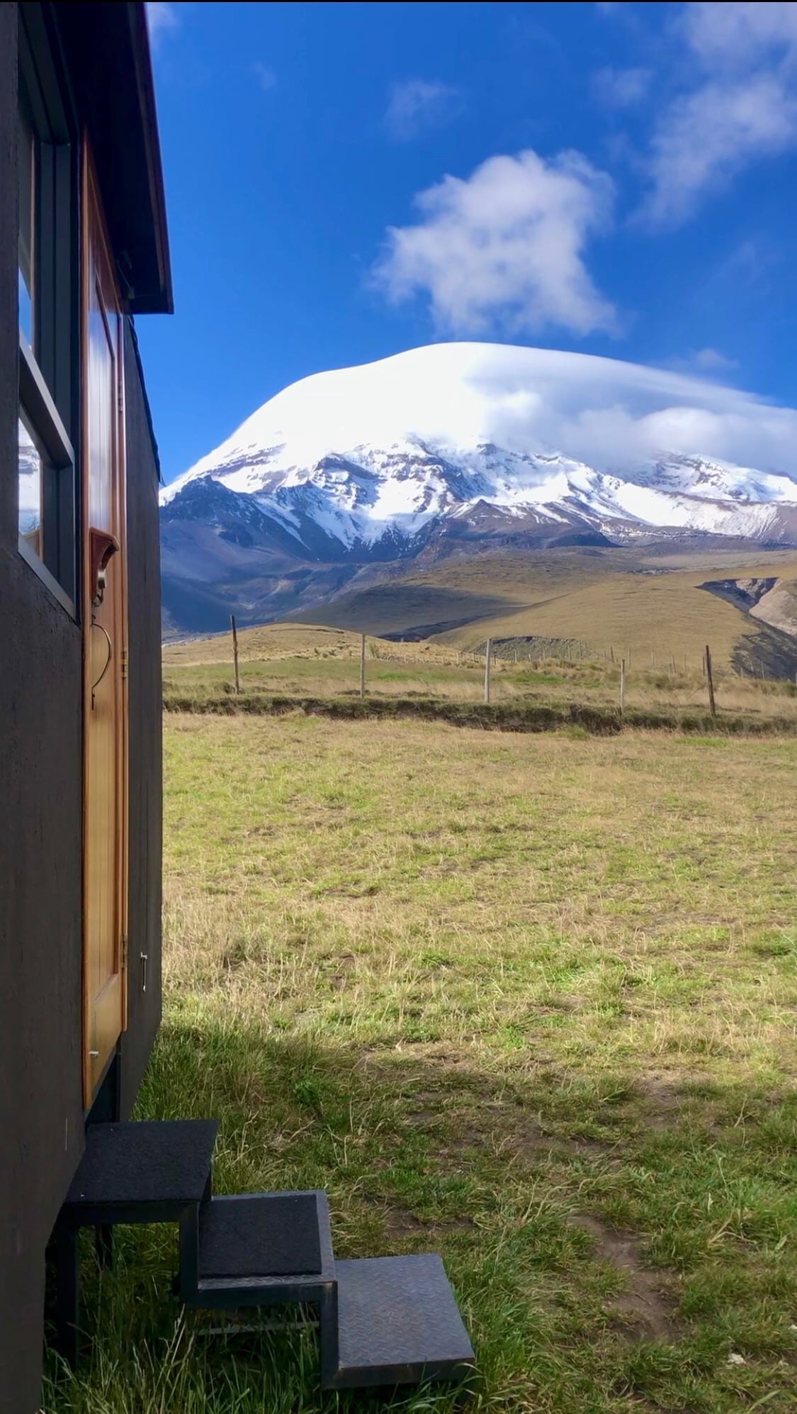 - Rumah terlindung terma - 1500 m2 privasi - Termasuk pendiangan dalaman yang digantung dengan pembakaran perlahan - Tingkap keselamatan (terbuka) - Dapur Penuh, Luas dengan 4 pembakar - Bilik sarapan bersalji di altar dan bilik tidur menghadap Chimborazo - Bilik mandi dengan pancuran mandi (air panas) - Almari dan batang - Kawasan lubang api luar - Sesuai untuk pasangan - Ya, ia mempunyai wifi Nikmati landskap yang luar biasa, langit berbintang dan percintaan di pinggir Chimborazo di kawasan yang selamat