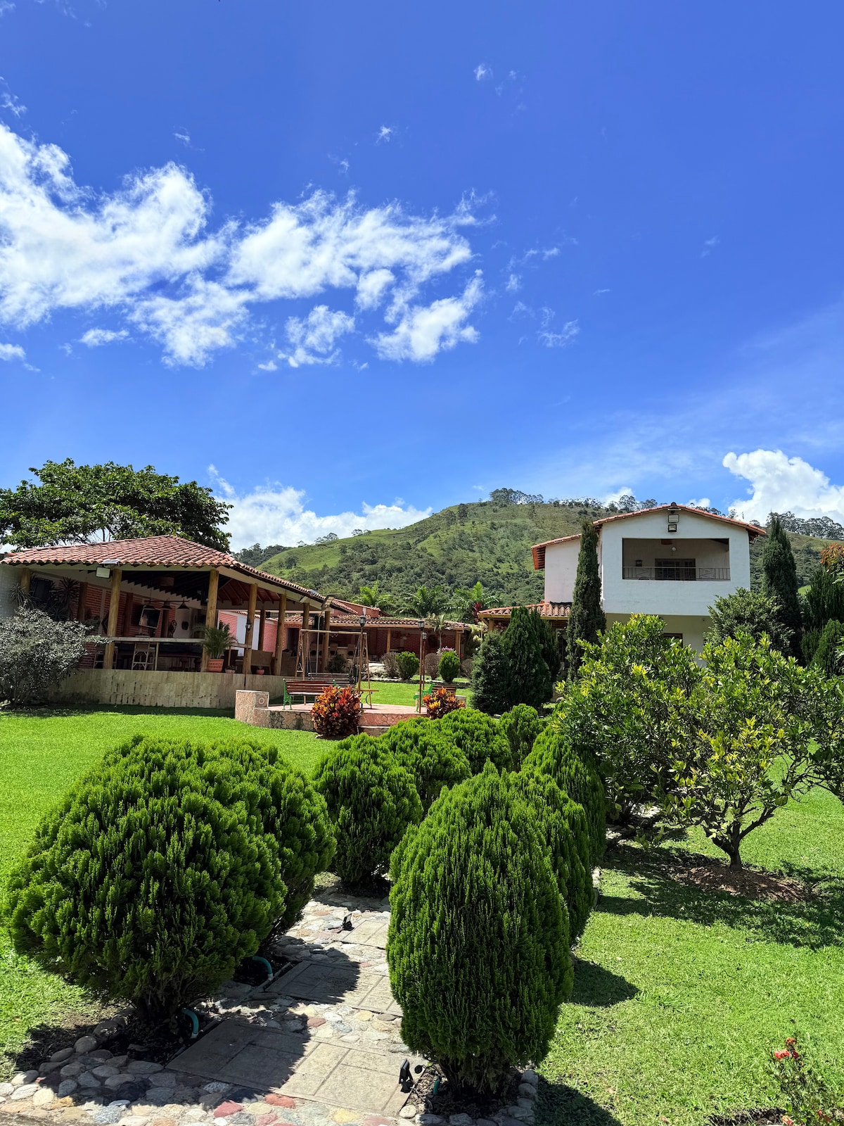 Rumah musim panas yang indah dengan kolam renang di bandar Chinácota yang cantik di Norte de Santander Colombia Rumah musim panas kami yang cantik dilengkapi dengan kolam renang, jakuzi, lima bilik tidur, BBQ, dapur gaya desa dengan dapur gas, buaian rajut, kawasan hijau, permainan papan dan banyak lagi. Ia mempunyai nilai asas sebanyak $ 300.000 malam untuk 2 orang, dan setiap orang tambahan yang menginap berharga $ 30.000 tambahan semalam dengan kapasiti maksimum 15 orang. Jika berminat, tempahan boleh dibuat di aplikasi airbnb