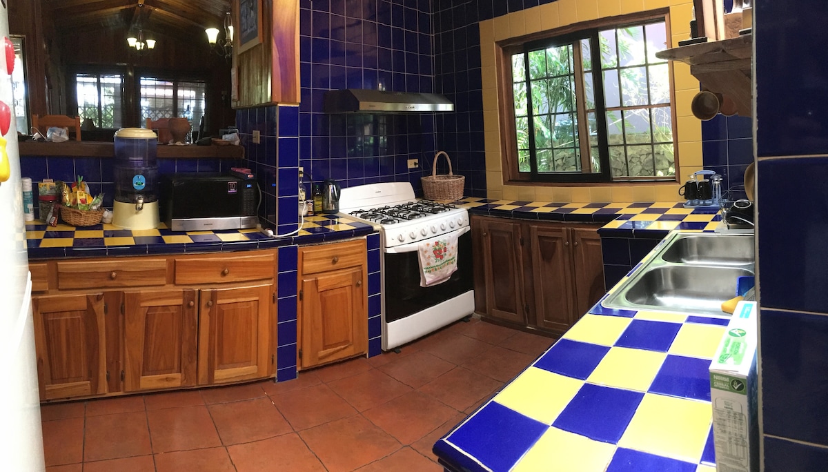 Rumah ini, yang terletak di atas 7 ekar, mempunyai dua suite utama, masing-masing dengan katil bersaiz king, dan bilik mandi peribadi mereka sendiri. Ia terletak 10 minit dari Volcan dari jalan ke Rio Sereno. Mata air dan sungai gunung, mata air tulen untuk diminum, padang rumput yang indah dengan kuda, denai hiking, dan kolam renang makan musim bunga. Kami mempunyai hutan awan pertumbuhan lama yang menakjubkan, termasuk burung, monyet, tupai dll. Tetapi yang paling penting...ketenangan, privasi dan kelonggaran. Kami janji...anda akan sukakan The Emerald Forest.
