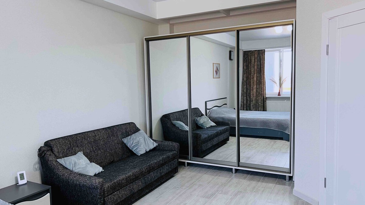 Penginapan yang damai untuk percutian keluarga yang santai, tingkat 4, agak tenang, jiran-jiran tidak bising dan tidak akan mengganggu), tempat yang sesuai untuk pasangan dan keluarga dengan kanak-kanak, 1 bilik tidur, almari pakaian yang luas, bukan TV besar, katil double, meja tepi katil, bilik mandi, bilik mandi terdiri daripada pancuran mandi, tandas dan sinki di atasnya, cermin, dewan agak luas, sofa, sofa, meja, meja, meja, meja, meja