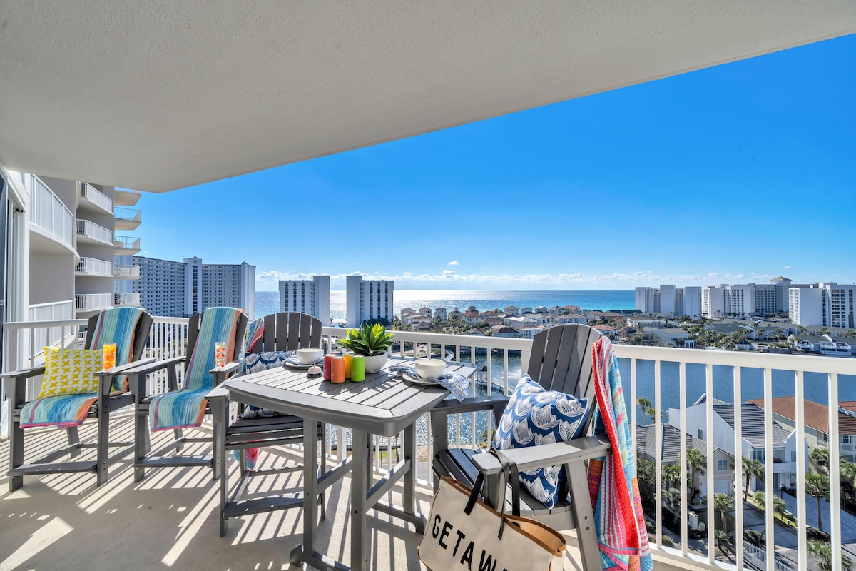 *ABSOLUTE BEST VIEWS & LOCATION* Beach front condo at one of Destin's top resorts with all the amenities! Sip your coffee & cocktails from your 15th floor balcony while enjoying panoramic views of Destin's clear emerald water and white sand beaches. Comfy king & twin beds & blackout shades Pools, hot tubs, Tiki Bar & Cafe Gym, sauna, basketball, pickleball, tennis Free parking & fast Wi-Fi Superhost & Guest-Favorite—book with confidence! Ready for beach memories? Reserve your dates today!
