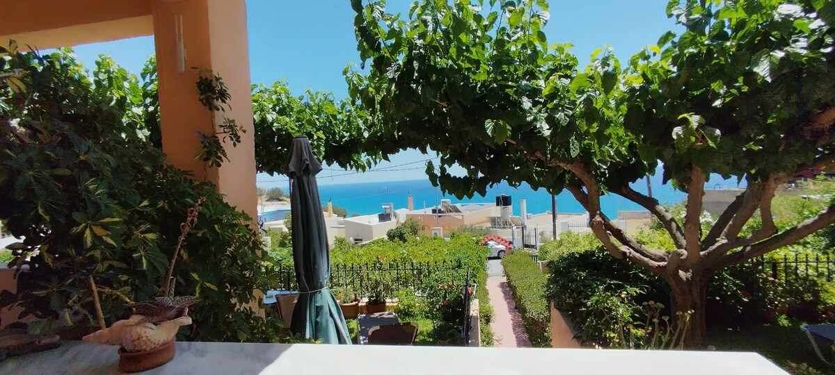 A peaceful and cosy independent apartment located in the beautiful and quiet village of Tertsa (80 km south of the city of Heraklion) with a garden view. It is located on the ground floor with a wooden patio surrounded by trees. You also have access to the garden where you can pick local vegetables with which we can cook local dishes together. The sea is only 3 min away on foot. Enjoy the serenity and the privacy of the apartment.