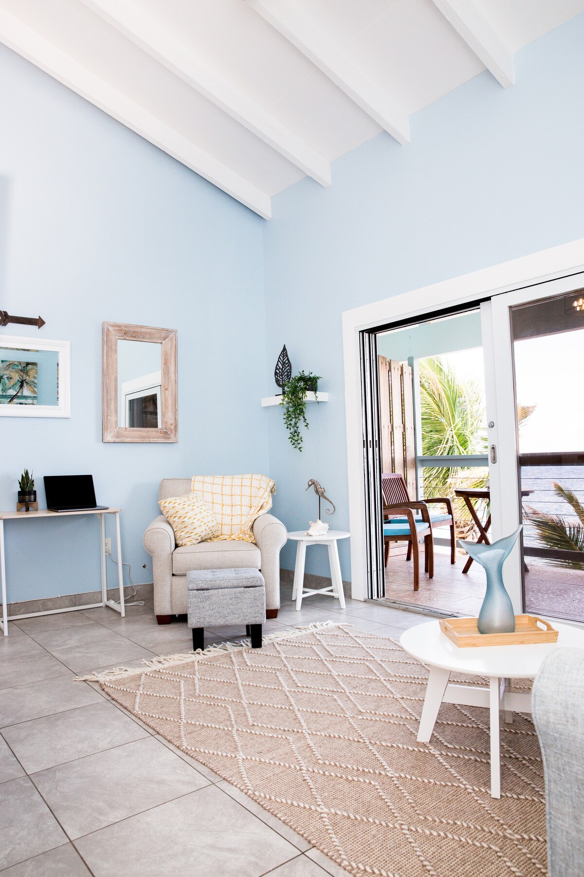 Lupakan kebimbangan anda dan bersantai di kondominium tepi pantai yang luas dan tenang ini. Rombakan penuh kondominium ini telah siap pada tahun 2023. Cahaya semula jadi, nada lembut dan estetika yang bersih terdapat di seluruh ruang tamu anda. Kami mengalu-alukan anda untuk duduk, berehat di luar, dan mendengar ombak dari teres anda sendiri di kondominium tingkat satu ini.