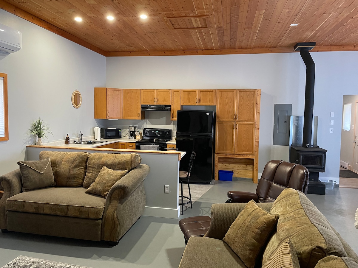 Kotej tepi air persendirian anda sendiri di tasik paling hangat di BC. Kongsi halaman dan dok persendirian kami. Jarak berjalan kaki ke kedai dan kemudahan. Pemasa lama ini telah dikemas kini untuk mencipta ruang tetamu yang sangat selesa. Harap maklum...wifi tersedia tetapi tiada tv. Dapur dilengkapi dengan keperluan asas, dapur dapur, peti sejuk dan microwave. BBQ, 2 kayak dan 2 sup tersedia untuk kegunaan tetamu. Haiwan peliharaan dialu-alukan setelah mendapat kelulusan