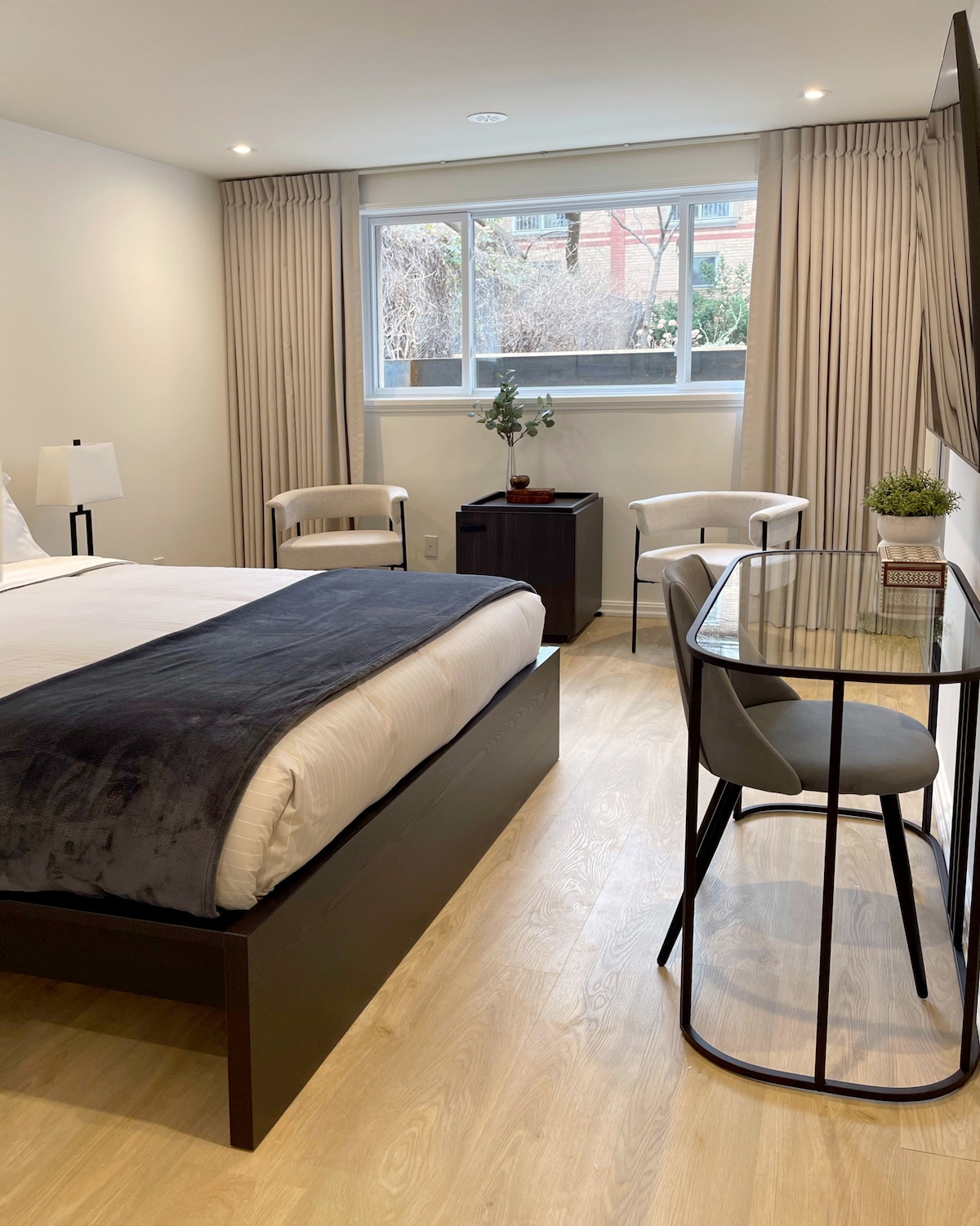Terokai percutian bandar anda di bilik seluas 500 kaki persegi ini di pusat bandar Toronto, tidak jauh dari Yorkville. Suite ini menampilkan katil bersaiz king, dapur serba lengkap, sesuai untuk makan, serta ruang tamu berasingan yang dipenuhi dengan cahaya semula jadi dan ruang makan yang selesa. Nikmati privasi bilik tidur berasingan dan bilik mandi yang lengkap. Ini adalah tempat yang sesuai untuk penginapan yang lebih panjang, hanya 5 minit berjalan kaki ke stesen kereta api bawah tanah Yonge-Bloor-ideal untuk meneroka bandar!