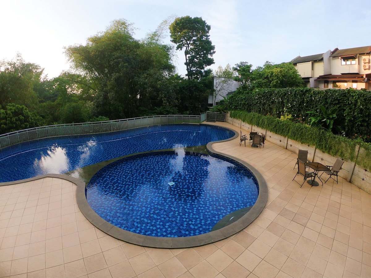 Have fun with the whole family at our stylish place. It’s a heated natural water from the hill (not a hot spring). Open from the living room, your children will love playing in this hot tub 💙 1. TIDAK available untuk pasangan yang BELUM menikah. 2. Setelah jam 10 malam kurangi volume suara dikarenakan area pemukiman. 3. Jam operasional Air Panas di kolam dari jam 6 pagi - 10 malam. 4. NO ALCOHOL, DRUGS, PORN & PARTY. 5. Security patroli 24 jam.