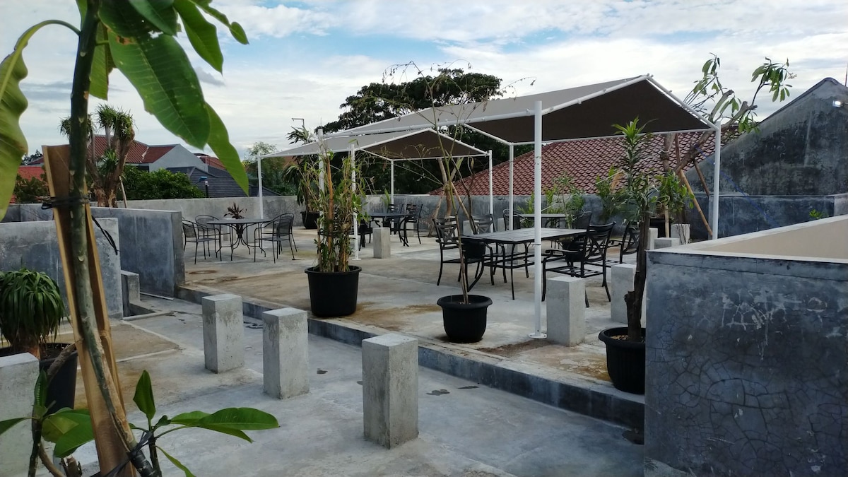 terletak di jalan utama, hanya 200m dari lebuh raya Kolonel Soegiono. hanya 20 minit dari Kuningan atau Pusat Membeli-belah Kota Kasablanka. setiap bilik mempunyai tilam King Koil dengan selimut dan bantal yang lembut dan bumbung. Kapasiti ialah 16 orang + 9 orang di mana 7 bilik akan dipenuhi dengan 3 orang dan 2 bilik 2 orang. Terdapat deposit sebanyak IDR 500,000 untuk menampung kerugian atau kerosakan yang dibayar apabila ia datang dan dibayar balik 3 hari selepas daftar keluar