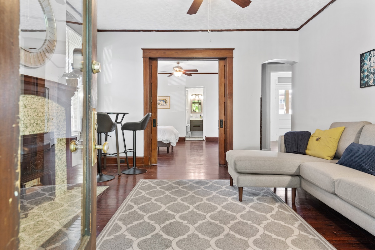 Bersantai di unit berkunci satu bilik tidur yang menawan ini dengan dapur dan ruang tamu, atau nikmati ruang luar berkongsi termasuk beranda depan dan dek di atas garaj. Kami telah menambah ruang kerja di bilik tidur dengan meja dan kerusi! Rumah bata kuning bersejarah kami hanya 5 minit memandu atau 15 minit berjalan kaki ke Daerah Gaslight bersejarah Clifton. Kampus UC dan Zoo Cincinnati berdekatan, atau mudah memandu ke Over-the-Rhine atau pusat bandar Cinci untuk konsert, permainan Bengals atau Reds, dan kehidupan malam!