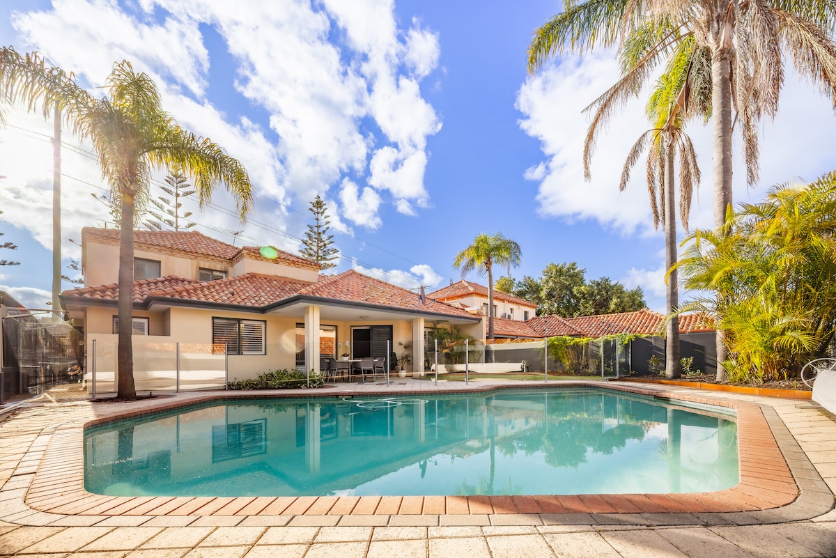 Bersantai di percutian keluarga Coogee kami yang luas, hanya beberapa minit dari Fremantle & 4 minit dari Coogee Beach. Rumah percutian 4 bilik tidur dengan sofa katil ini boleh menampung sehingga 10 tetamu dan mempunyai 3 ruang tamu, meja snooker penuh, dan banyak ruang untuk berehat. Nikmati kemudahan mesra keluarga, laluan pejalan kaki dan basikal, taman permainan, kafe dan restoran berhampiran. Sesuai untuk percutian pantai, percutian kumpulan, atau percutian tasik yang tenang di pantai selatan Perth yang indah.