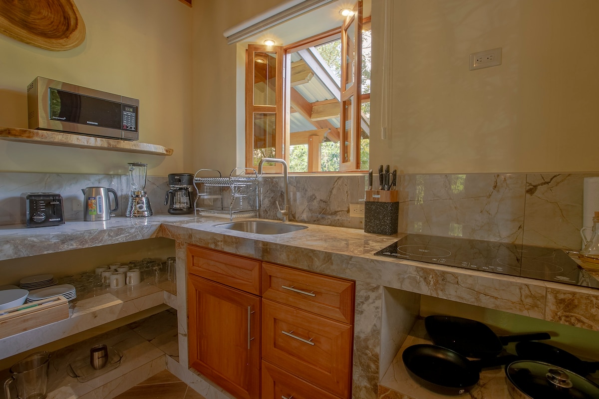 Dikelilingi oleh burung hummingbird dan bunyi mereka. Kami menggabungkan keselesaan dan alam semula jadi dalam suasana yang menakjubkan. Permata tempat ini tidak syak lagi pemandangan panorama, dari balkoni persendirian anda boleh mengagumi gunung berapi yang mendominasi ufuk, serta lembah yang indah yang pada waktu malam dimandikan oleh lampu bandar. Pengalaman malam ini mempesonakan dengan api yang memberikan kehangatan dan mewujudkan suasana yang selesa dan romantik serta katil terapung di mana anda boleh menikmati malam berbintang.