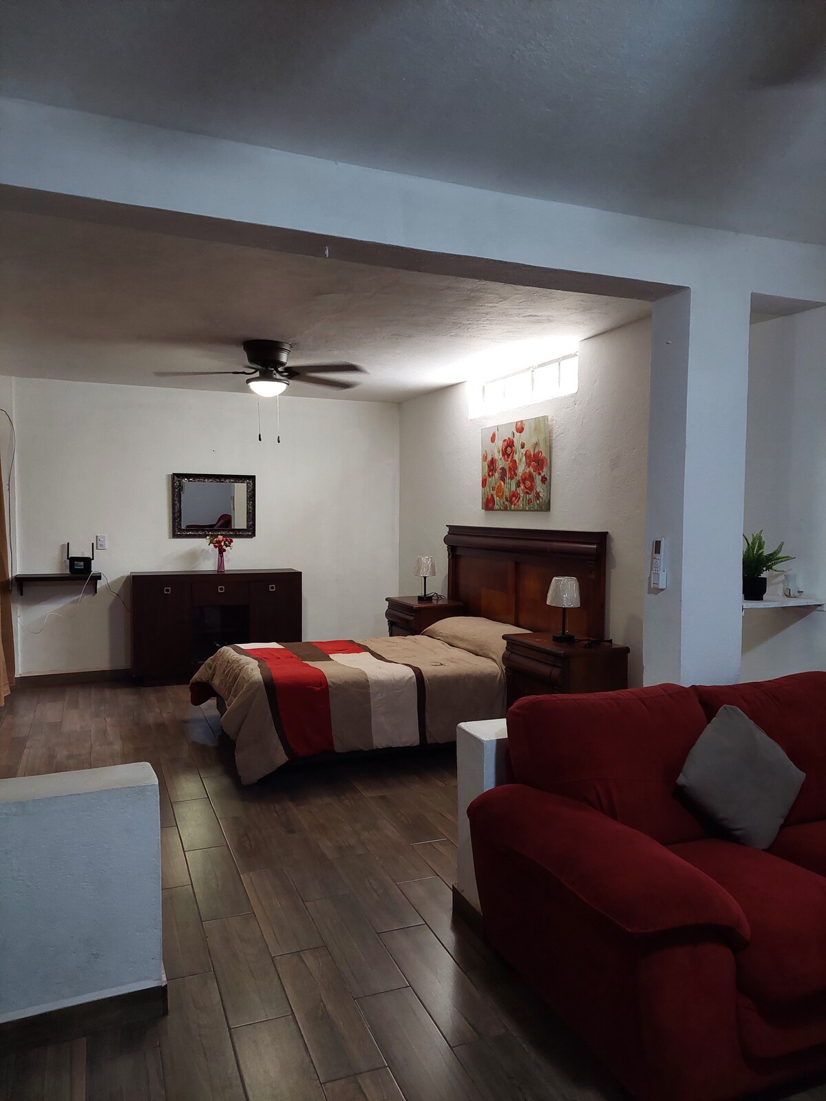Kami ada 2 bilik tidur, kawasan kedai kopi, WIFI, ROKU TV, kemudahan air panas, katil sofa double, iklim. Stesen Bas ✅ Pusat 6 minit ✅ Delegasi Insurans 4 minit jauhnya ✅ Pusat Bandar 7 min ✅Torre Bicentenario Fiscal Office 8 min ✅ Hospital IMSS 9 minit ✅ Farmasi Serupa farmasi 2 blok Y Guadalajara Tempat makan yang ✅ berbeza 2 blok jauhnya