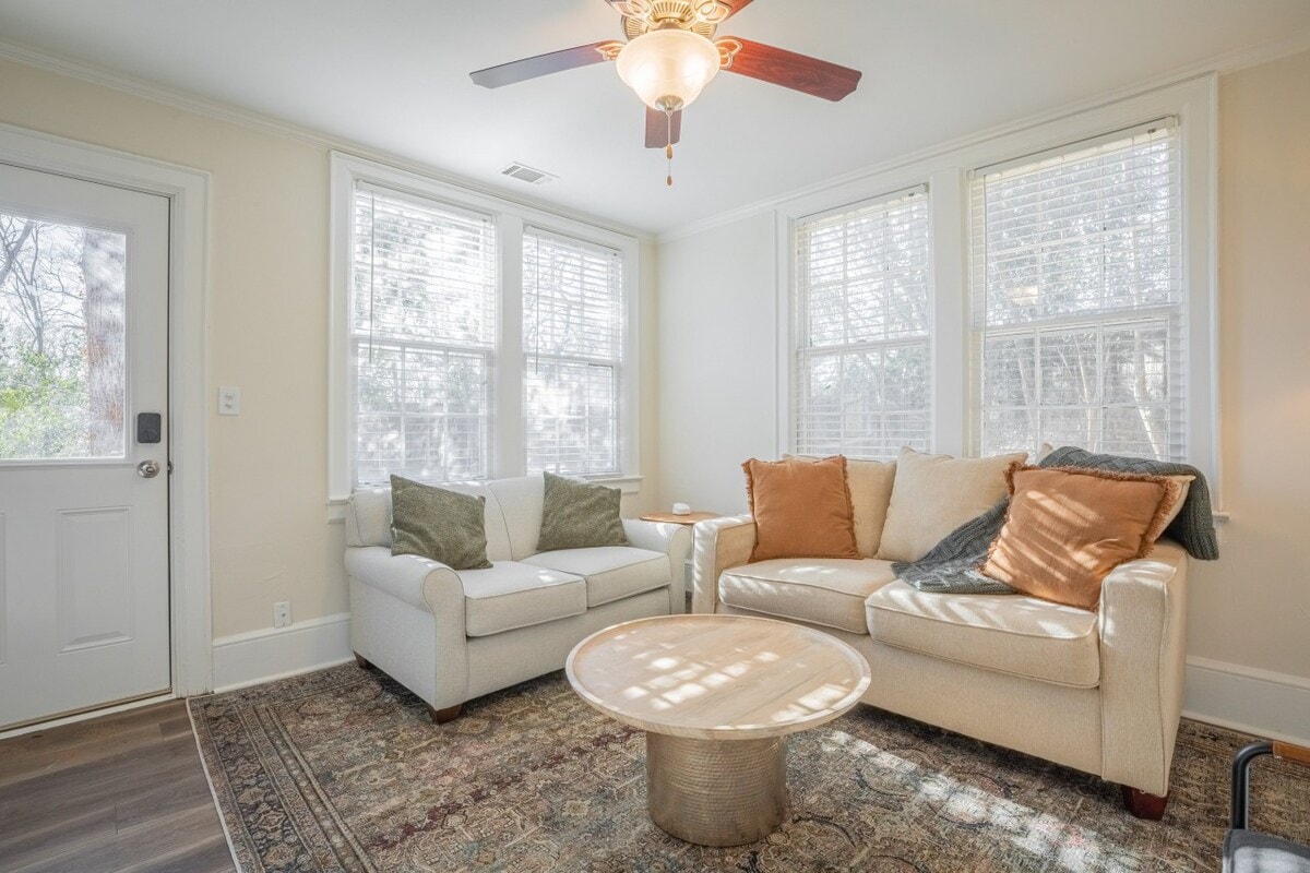 Apartmen selesa ini terletak di atas rumah bersejarah 5 Points. Ia menampilkan pintu masuk persendirian yang berasingan dan boleh diakses dengan penerbangan 31 langkah. Apartmen ini mempunyai ruang duduk, bilik tidur dan bilik mandi dengan pancuran mandi. Lihat ke luar tingkap anda di atas pokok dan berjalan kaki ke pusat bandar, kampus & membeli-belah. Gazebo di hujung jalan masuk mempunyai buaian di dalamnya, dan anda boleh menikmatinya!