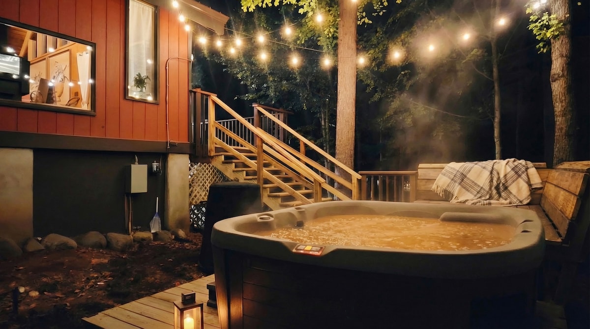 Tab mandi air panas luar baharu, sistem menonton bintang & nyanyian. Terletak di pergunungan, kabin kami menawarkan melodi sungai berhampiran yang menenangkan. Sesuai untuk peminat alam semula jadi dan pencari bersantai, ia boleh memuatkan sehingga 6 tetamu. Dengan tarikan seperti Whiteface Ski, Adirondacks &Lake Placid berhampiran, ia mengimbangi pengembaraan dan ketenangan. Kabin mewah moden kami menampilkan kemudahan jenama, kemudahan mesra kanak-kanak dan haiwan peliharaan. Nikmati suasana yang tenang dan bunyi sungai betul-betul di depan pintu anda.