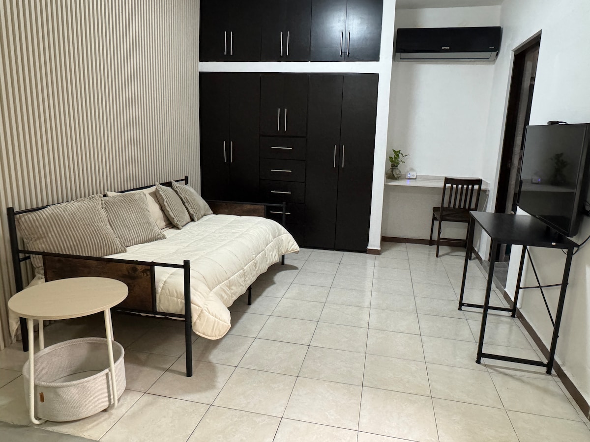 Nikmati bilik persendirian, selesa dan berfungsi di kawasan yang tenang dan selamat. 🏡 📍 Hanya 10 minit dari TEC, Stadium Banorte, Fundidora & pusat bandar. Katil 🛏️ penuh dengan bilik mandi persendirian ❄️ A/C panas & sejuk 🖥️ TV Pintar 32" 💻 Meja 🍳 Dapur elektrik, ketuhar gelombang mikro, peti sejuk mini & peralatan 🍽️ Meja makan 🚪 Pintu masuk bebas (tingkat 1) 🧴 Tuala, syampu & sabun disediakan