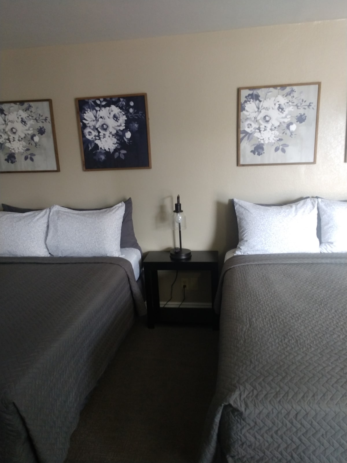 Charming Two queen bedroom with min fridge, microwave, flat screen tv, cable & internet. Use of a community kitchen fully stocked. Equipped with cookware, cutlery, coffee, large dining table for that homey feeling. Enjoy easy access to popular shops and restaurants from this charming place to stay.
