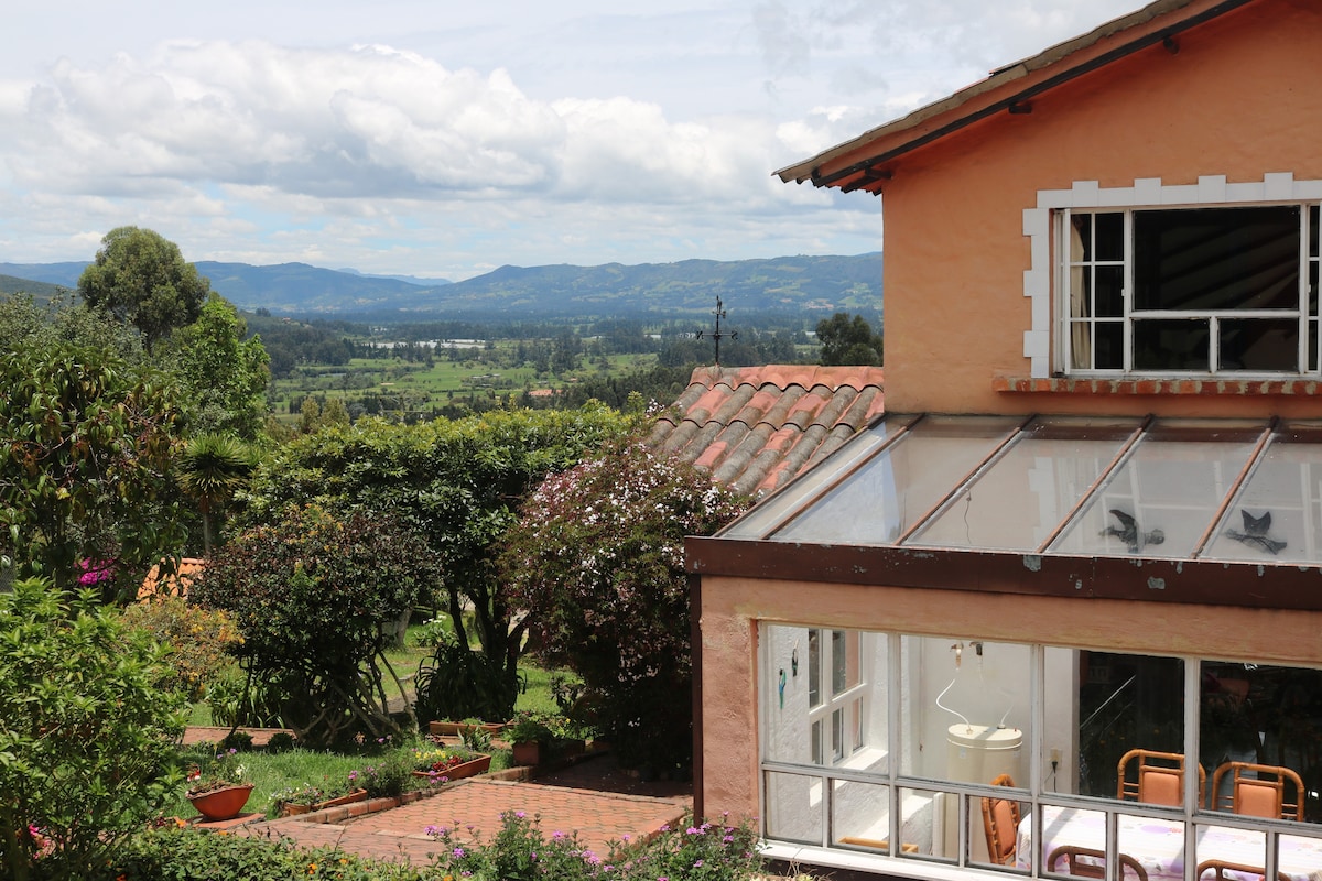 Kabin yang indah 1 jam dari Bogotá, dibina oleh aras yang mengiringi kawasan gunung, dengan pemandangan indah lembah Nemocón dan Neusa, dikelilingi oleh alam semula jadi, buah-buahan dan haiwan ladang. Ruang yang selesa dengan pencahayaan semula jadi yang sangat baik membolehkan rehat yang indah dan saat terputus hubungan sebagai sebuah keluarga. Anda boleh duduk mengelilingi kehangatan pendiangan, berkongsi permainan papan, menyediakan resipi yang kaya, dan merenung landskap sambil menikmati hubungan dengan alam semula jadi.
