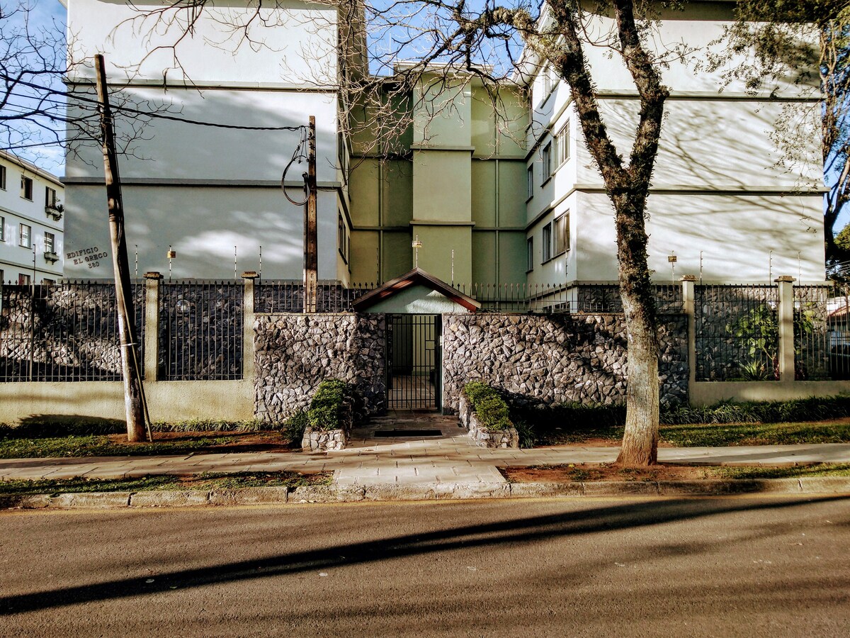 Kawasan Curitiba yang dibarisi pokok dan tenang. Kondominium ini menawarkan persekitaran yang selamat, tenang dan selesa untuk tetamu. Berhampiran dengan taman Bacacheri, Muzium Rosicrucian Mesir, CINDACTA II dan berek lain, lapangan terbang Bacacheri, pasar raya, kedai roti, kedai buah-buahan, bank, stesen minyak dan perdagangan umum. Akses mudah ke Pusat(kereta atau bas). Penginapan cerah dan lengkap dengan segala-galanya yang anda perlukan untuk berasa seperti di rumah. Anda perlu menaiki tiga anak tangga.