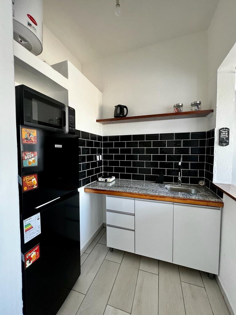 Ia adalah ruang tamu dengan katil kelamin dengan cadar dan tuala. Ha Mesada, Ketuhar gelombang mikro, Helier, Jarra Eléctrica, pinggan, peralatan makan, gelas, meja, kerusi. Latar belakang dengan gril. Bilik mandi kecil persendirian. Tempat yang menakjubkan di Rambla Costanera 10 blok dari Pusat. Lokomoción yang sangat baik. Lugar priviligiado!!!!!
