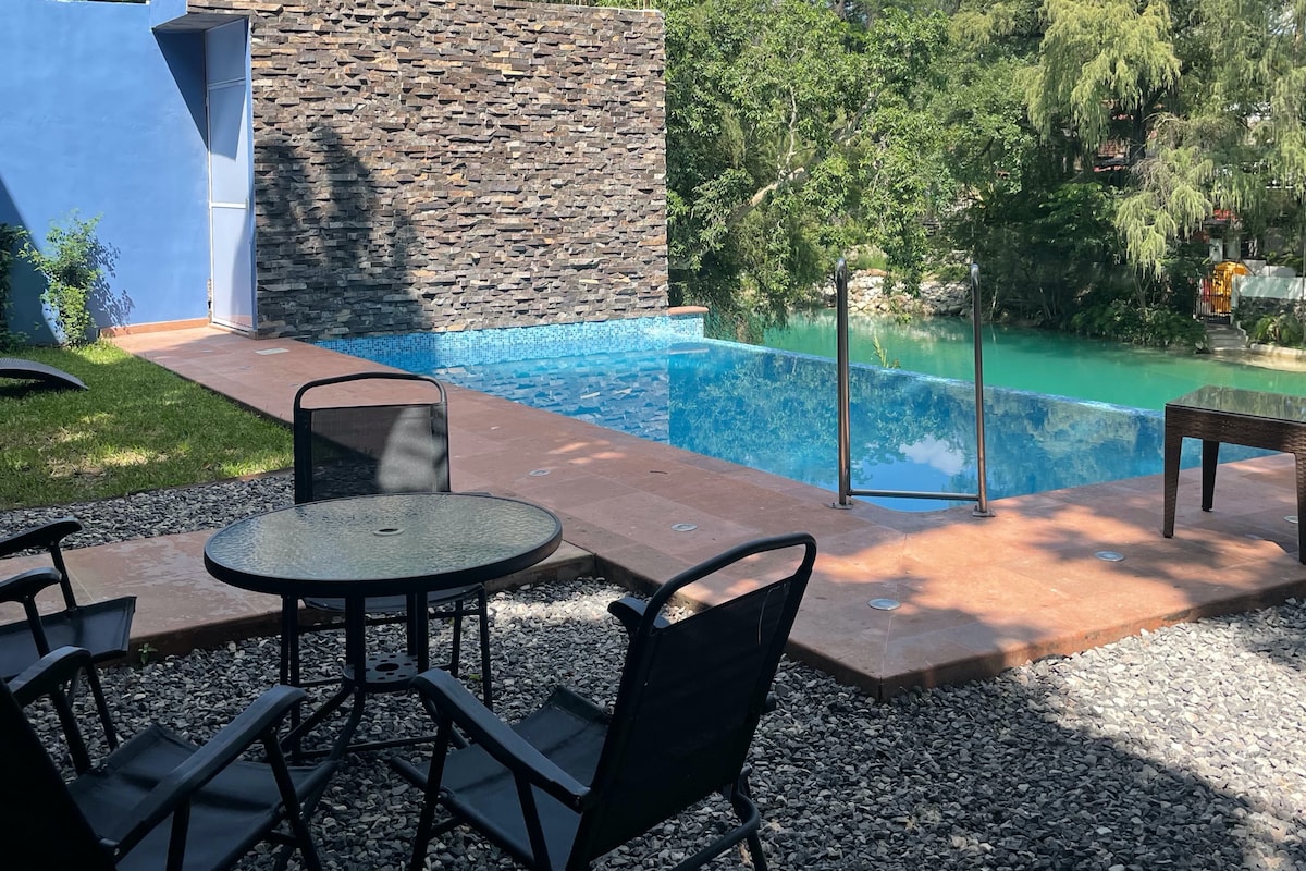 Bercuti ke Casa del Río, tempat percutian moden di tengah-tengah La Huasteca Potosina. Walaupun ia tidak betul-betul di sungai, rumah kami menawarkan akses mudah kepada tarikan pelancong yang paling popular di kawasan ini, termasuk Cascada de Minas Viejas, El Salto, dan Meco. Alami yang terbaik di La Huasteca en Casa del Río: pangkalan anda untuk pengembaraan dan bersantai! Ia mempunyai internet pantas daripada syarikat Elon Musk, Starlink. Anda juga akan mendapat akses kepada Netflix, HBO dan Disney+.