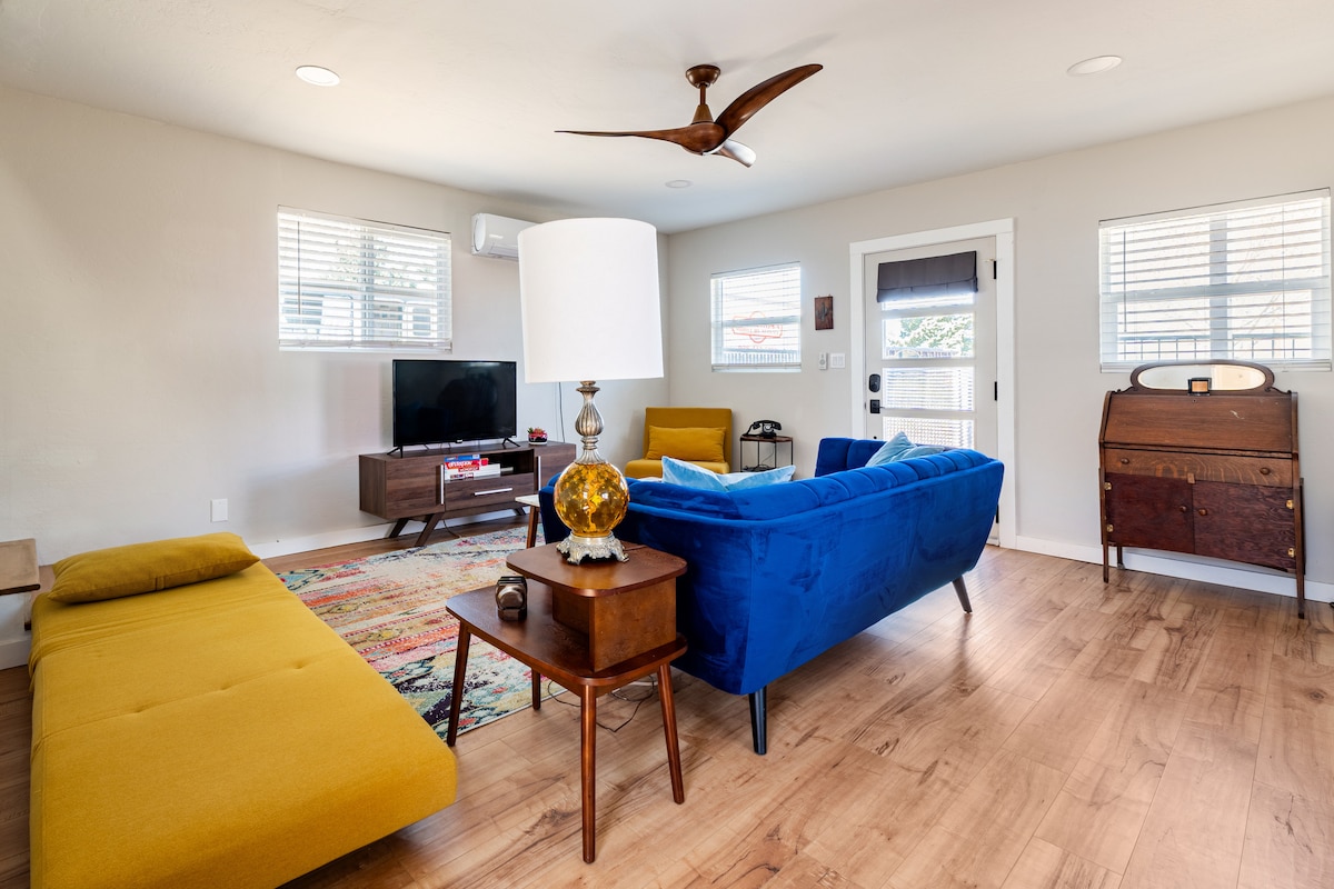 Menginap di bangsal yang diubah suai di denai, nikmati aktiviti luar, buat unggun api, atau kekal selesa di dalam. Rumah percutian kami mempunyai semua yang anda perlukan untuk menikmati Sedona bersama keluarga anda. Dengan perabot dan tekstil desa, bilik tidur utama yang cantik dan bilik dua tingkat yang menempatkan enam orang - nikmati keseronokan berkhemah sambil menikmati keselesaan rumah sendiri. Langkah keluar dari pintu belakang ke laluan pendakian yang tidak berkesudahan, lubang api untuk memanggang hotdog dan s'mores, dan pemandangan indah bukit-bukau dan batu merah.