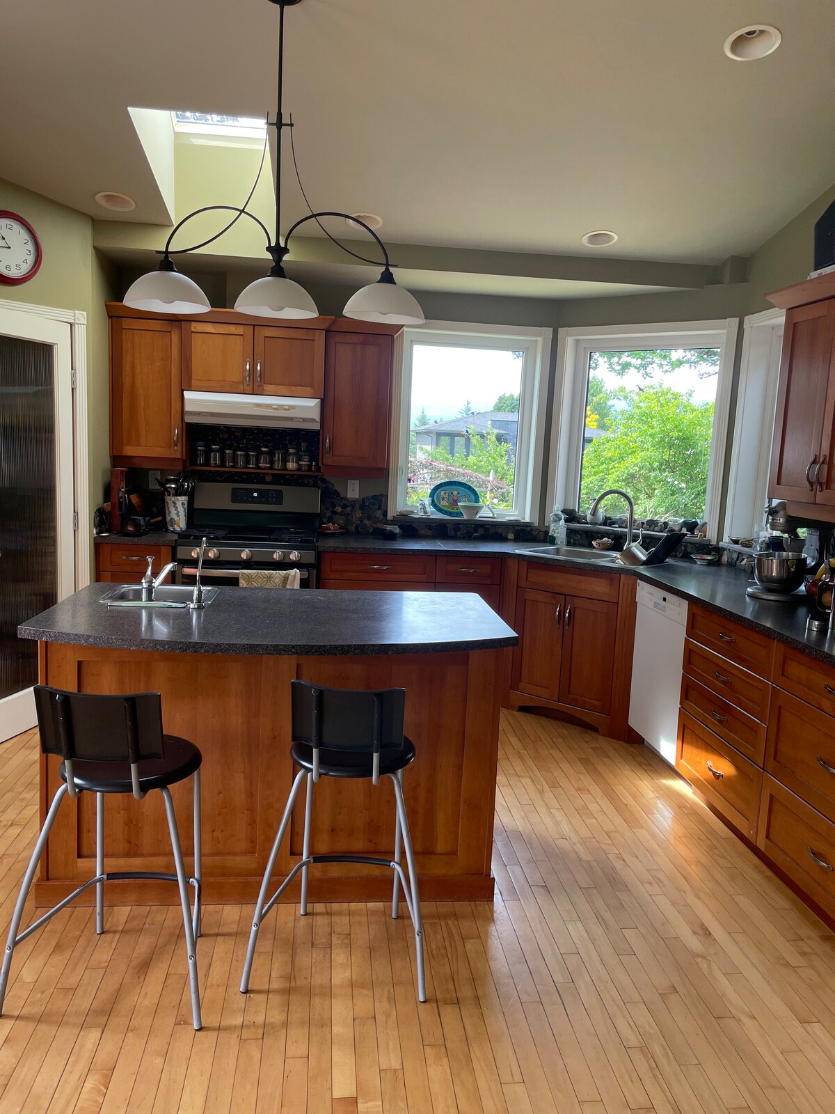 Ini ialah suite di tingkat atas rumah kami. Terdapat ruang tamu dengan dek bersebelahan, bilik tidur dengan katil saiz queen dan dapur kecil yang lengkap dengan ketuhar mikro, pembakar roti, kuali elektrik, periuk kuali, pengisar, cerek elektrik dan pembuat kopi Keurig, kopi, teh, bijirin. Anda mempunyai bilik mandi peribadi penuh di luar koridor betul-betul di sebelah suite. Kami mempunyai pintu masuk berasingan. Suite termasuk TV pintar dengan Netflix Lesen perniagaan Bandar Comox #1407 Pendaftaran Wilayah BC H022196518