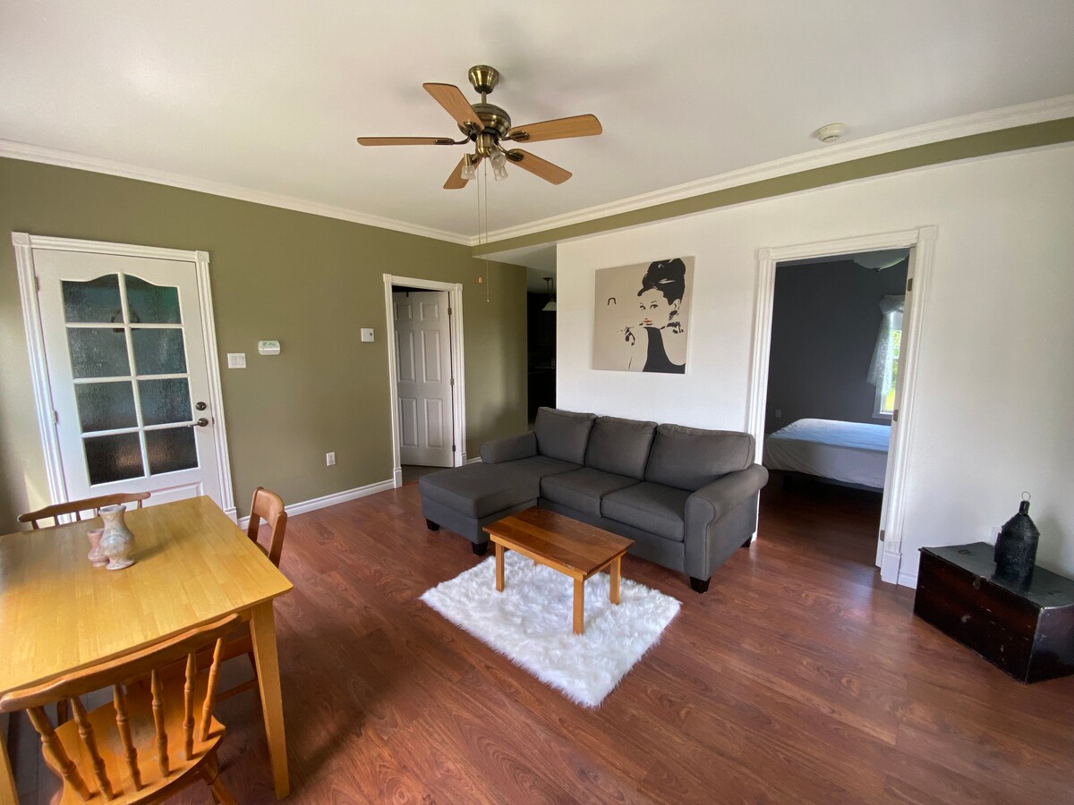 ***PROMOSI Februari 2025 Sewa 3 malam pada satu masa dan kami akan membayar balik kepada anda 10% daripada jumlah keseluruhan tempahan anda.*** Bujang kecil yang cantik 300pi2 intim dan semua berperabot berhampiran dengan semua perkhidmatan. Lantai yang dipanaskan, pancuran mandi seramik dengan jet urut, pembuat kopi Kurig, peralatan tempat tidur dan dapur serba lengkap. Pinggan induksi dan Air Fryer. Wifi dan TV Pintar. "Bell TV Fibe" tersedia. Restoran berdekatan, kedai runcit, kedai serbaneka, laluan basikal.