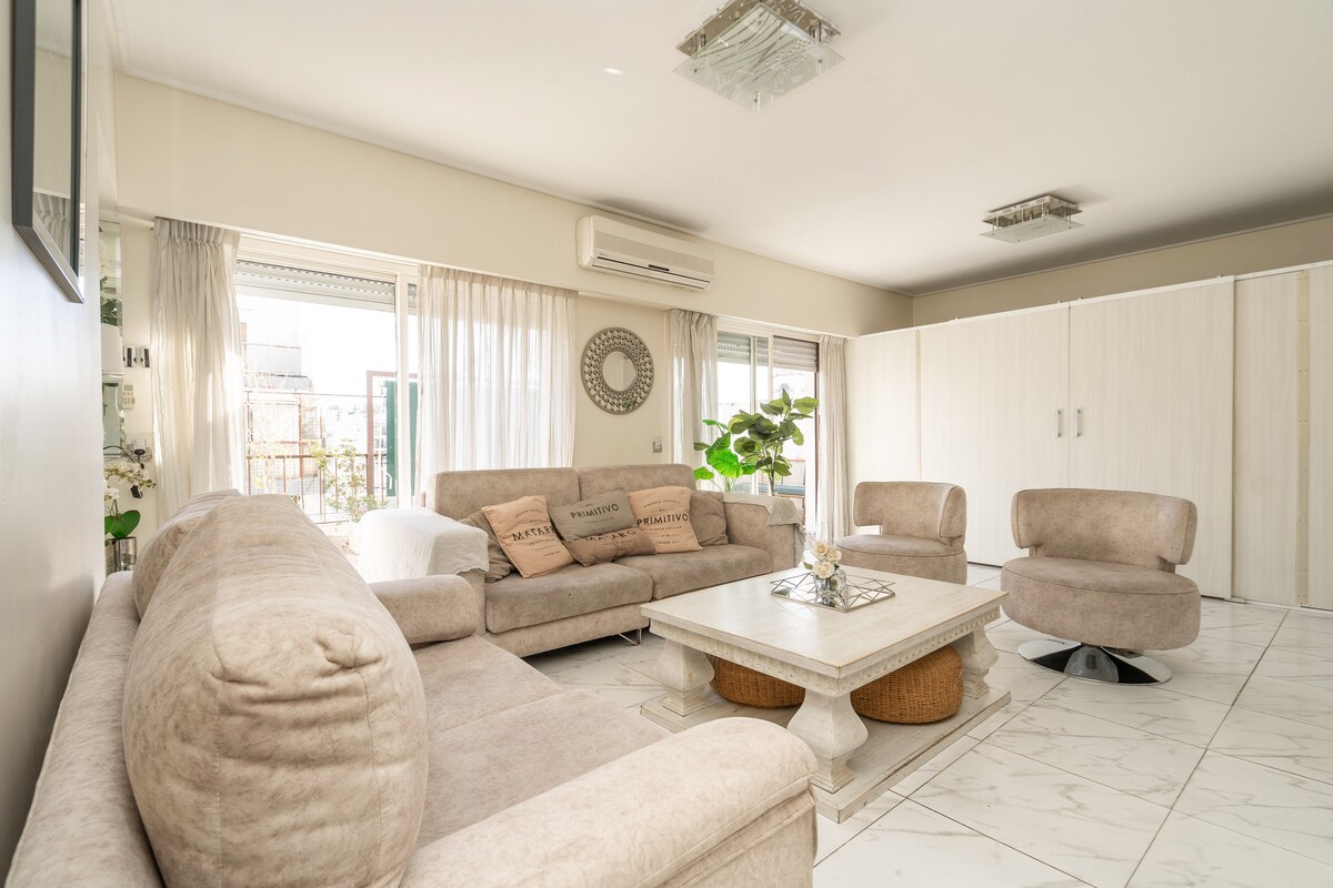 Jabatan reka bentuk di Flores, sesuai untuk keluarga atau kumpulan sehingga 6 orang tetamu yang mencari keselesaan dan unik. ✔ 3 bilik tidur luas dan selesa ✔ 2 bilik mandi penuh + tandas Ruang ✔ tamu yang cerah dengan TV Pintar dan pendingin hawa ✔ Dapur yang dilengkapi dengan mesin basuh pinggan mangkuk dan ruang makan Teres ✔ balkoni dengan meja, kerusi dan pemanggang ✔ Gimnasium persendirian dengan peralatan ✔ Mesin basuh dan Wi-Fi berkelajuan tinggi Tempat yang direka untuk berehat, berkongsi detik-detik dan mengalami Buenos Aires dengan bergaya.