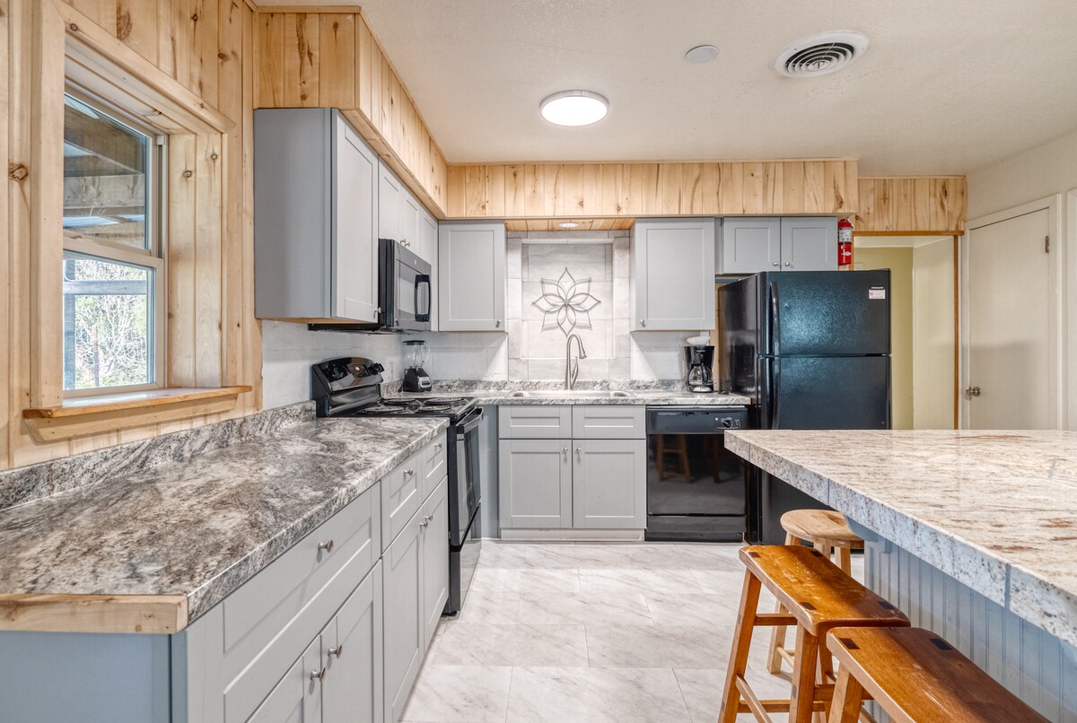 Penginapan tepi sungai di atas tanah seluas kira-kira dua ekar dengan patio persendirian di Sungai Guadalupe yang indah, dan kabin desa yang menawan di atas bukit (satu minit dengan kereta, lima minit berjalan kaki). Dua bilik tidur persendirian, serta dua set katil dua tingkat di ruang tamu terbuka (jumlah empat katil berkembar), serta katil sofa queen baharu di salah satu daripada dua bilik tidur - boleh memuatkan 8-10 tetamu dengan selesa dengan jumlah 8 katil. Mesra haiwan peliharaan - kami suka anjing (dan semua haiwan) dan mengalu-alukan haiwan peliharaan anda!