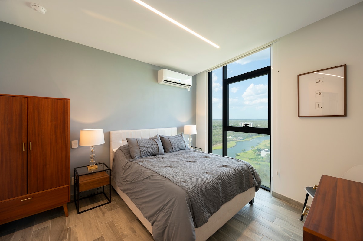 Selamat datang ke tempat perlindungan anda di Temozón Norte, salah satu kawasan yang paling pesat berkembang di Mérida, yang masih mengekalkan ketenangan dan persekitaran semula jadinya. Apartmen satu bilik tidur kami sesuai untuk berehat dan berseronok: ia mempunyai katil saiz king, almari, bilik mandi persendirian dan katil sofa berganda yang selesa di ruang tamu untuk tetamu tambahan. Nikmati kolam renang persendirian anda sendiri di teres atau manfaatkan kemudahan bangunan seperti gimnasium, kolam renang umum, taman haiwan peliharaan dan bilik acara.