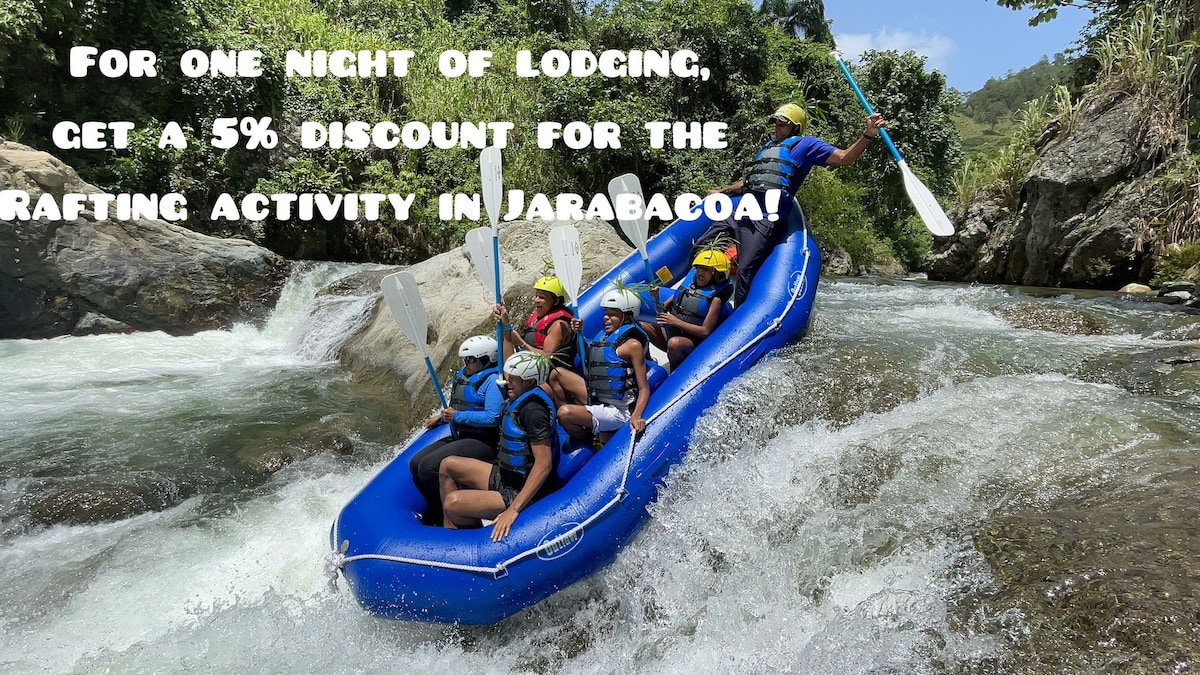 Disfrute junto a su familia y amigos esta hermosa casita rodeada del verdor y la tranquilidad de la naturaleza. Hermosísimos paisajes de las montañas, acceso a piscina y río, rutas de senderismo y ciclismo. Dentro del precio incluimos actividades con los animales de nuestra hacienda (vacas, gallinas, ovejos, caballos). Atenciones de nuestro personal 24/7. Ubicación ideal, conveniente cercanías a los aeropuertos STI & SDQ.