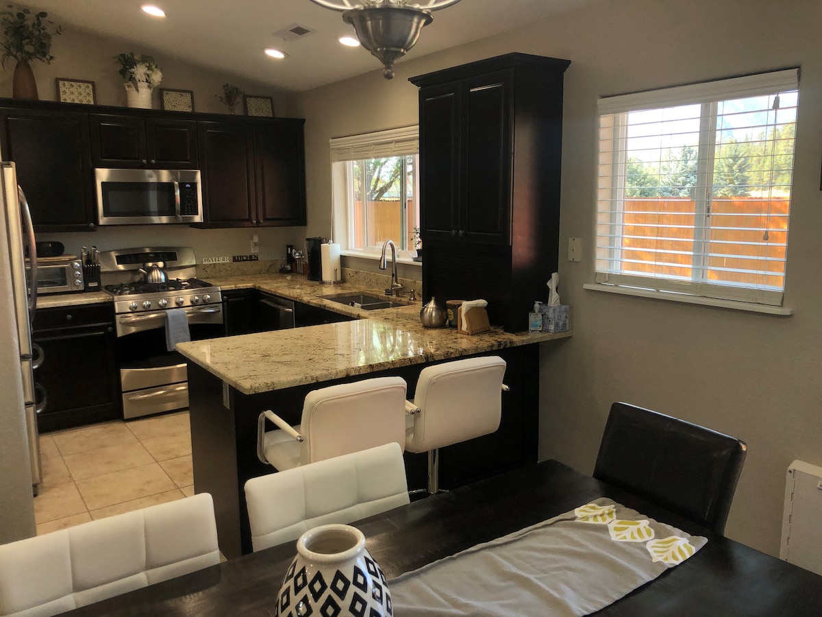 Townhome Country Club yang menawan dan selesa, tingkat tunggal, 1 bilik tidur dengan katil king di bilik tidur utama dan sofa tidur queen di ruang tamu. Kami menawarkan suasana kasual dan selesa. Dapur lengkap dengan bar sarapan, dan ruang makan dan mesin basuh/pengering di unit. Terdapat dek luar yang indah untuk berehat dan gril gas. Rumah kami mudah dicari, dan akses mudah ke laluan ke Grand Canyon, Sedona dan AZ Snowbowl. *SEKARANG dengan A/C!