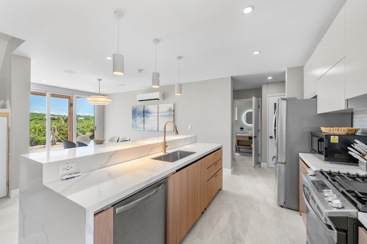 Bersantai di ruang yang tenang dan bergaya ini. Penginapan moden 2 bilik tidur, 2 bilik mandi ini terletak di sepanjang Chalk Sound yang tenang, menawarkan pengasingan yang damai dengan pemandangan yang menakjubkan. Jauh daripada kesibukan Grace Bay, ia memenuhi keperluan tetamu yang ingin berehat dan mengembalikan tenaga. Nikmati ruang tamu yang luas, kemasan bergaya dan pemandangan air yang menakjubkan dari hampir setiap bilik—sesuai untuk mereka yang mencari keselesaan dan ketenangan. 15 minit ke lapangan terbang 20 minit ke Grace Bay 5 minit ke Pantai Teluk Taylor & Teluk Sapoddila