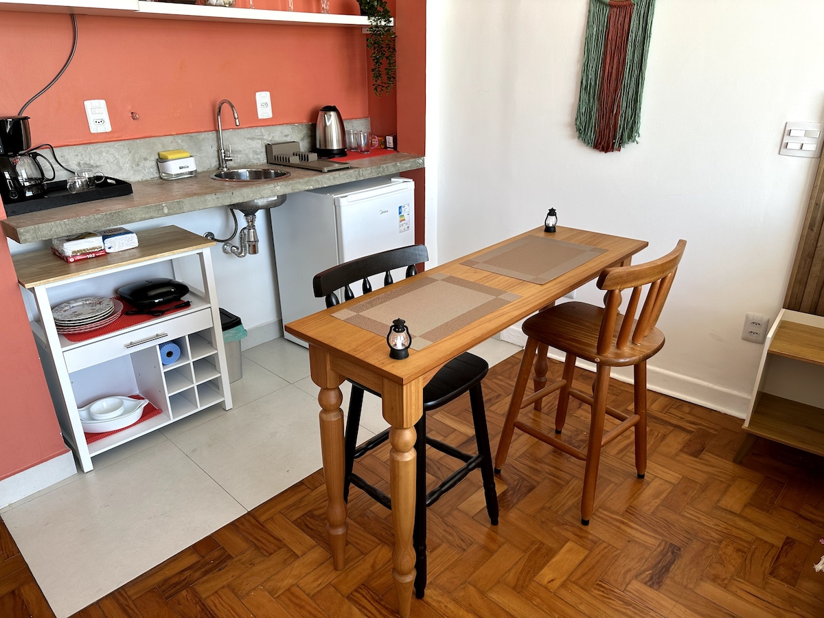 Air conditioning + Ultra-fast internet + Queen bed. Studio apartment in São Paulo's most famous building, with equipped kitchen and central location. Easy access (less than 15 minutes) to: Municipal Theater, 25 de Março and Municipal Market, Football Museum, Paulista Avenue, MASP, Augusta Pinacoteca, Praça das Artes, Vale do Anhangabaú, Vila Madalena. 200m from the Metro (República).