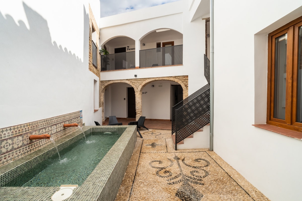 This flat deserves a special mention as it has an unprecedented configuration within the group of accommodations. It forms part of the essence of the historical heritage of the city centre. You will be able to enjoy the private use of a patio with a wonderful private swimming pool that will cool you off on hot city days. An oasis in a historical case of winding streets full of history.